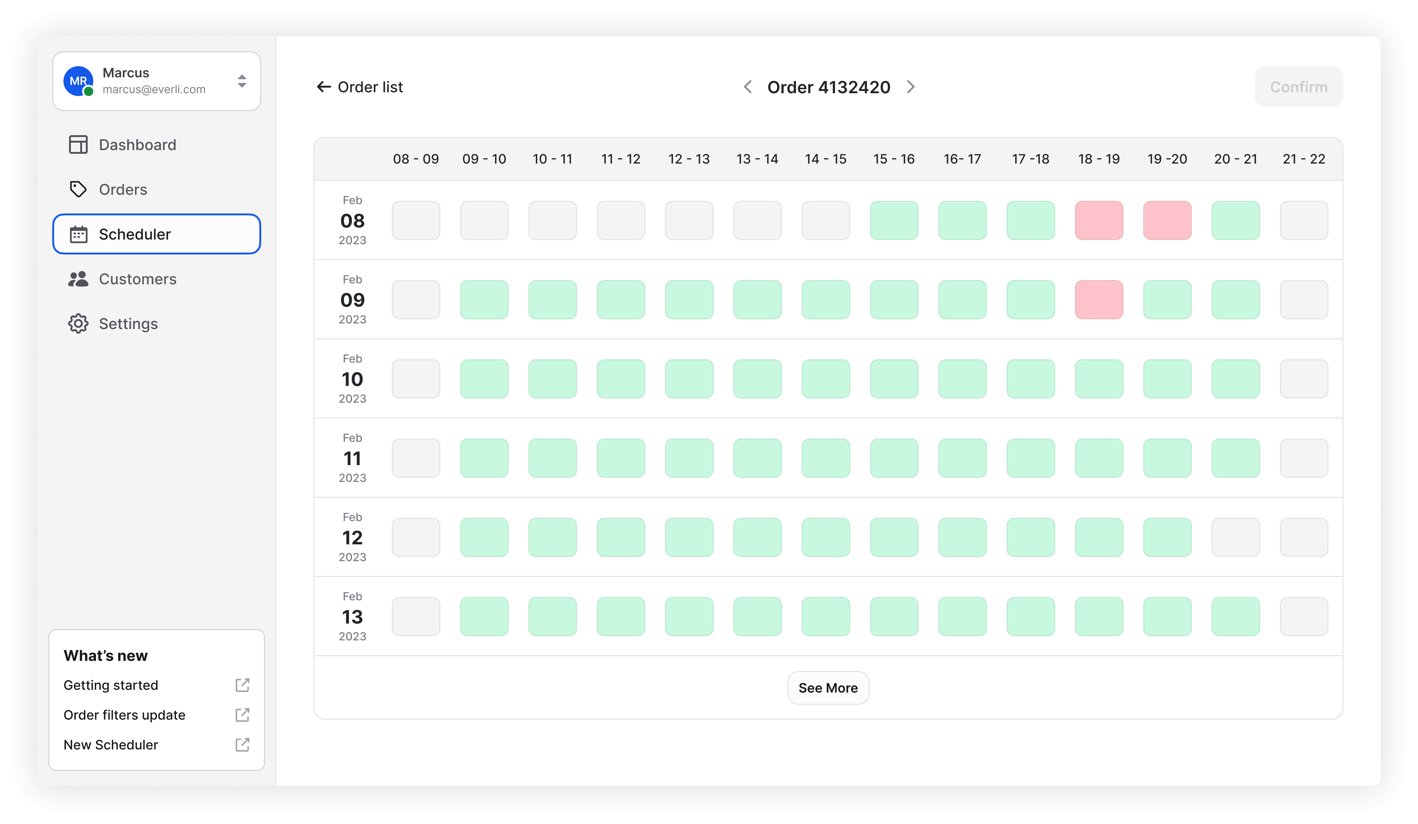 The new rescheduling feature in the OMS (image3.1) allows agents to intervene in critical situations when no shopper is available to complete a delivery. With a clear view of available time slots—based on store opening hours and shopper availability—agents can quickly reassign the delivery. Once a new slot is selected, the customer automatically receives a notification via the app to confirm the updated time, eliminating the need for phone calls and significantly reducing handling times and the risk of late communication.