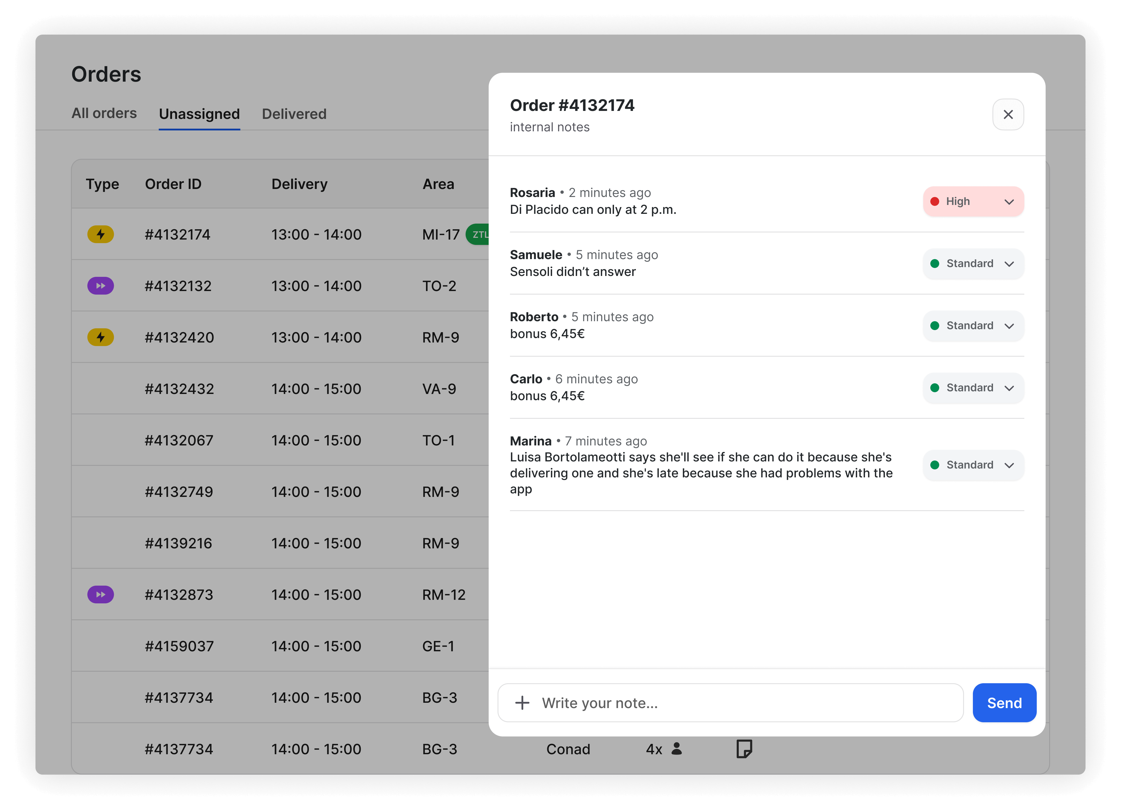 The Shared Notes (image 2.0) feature is a key improvement for agent collaboration in managing problematic orders. Previously, communication happened through an external messaging tool, which led to delays, frequent misunderstandings, and difficulties in identifying which order the issue referred to and how urgent the note was.